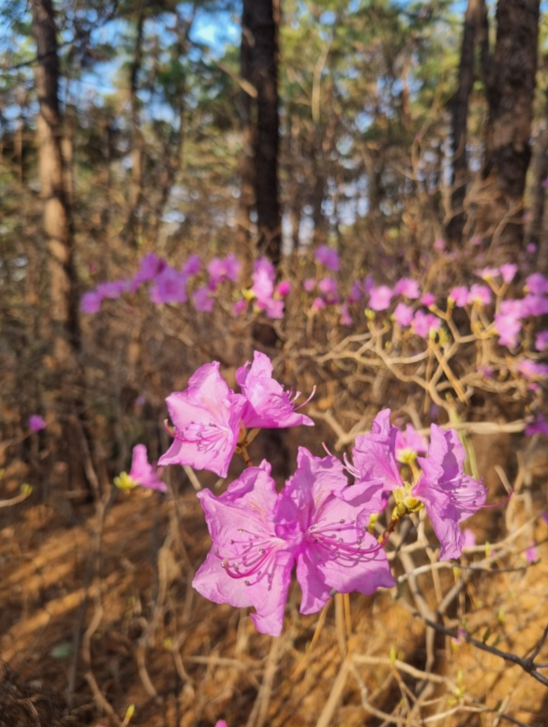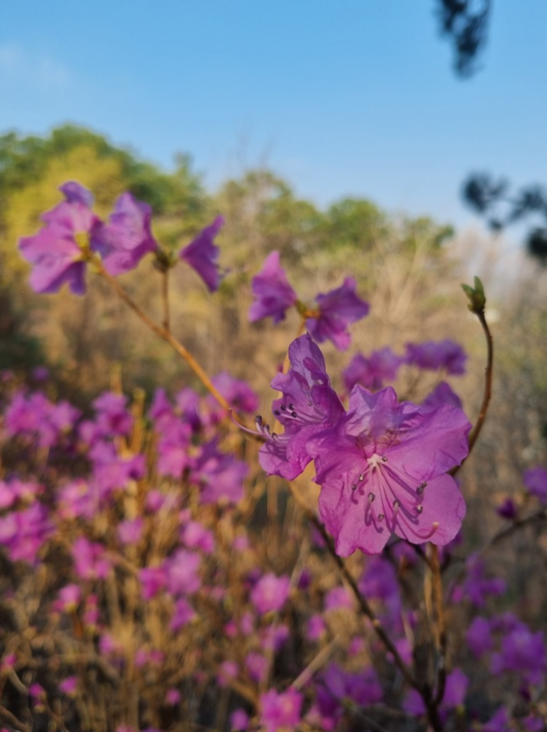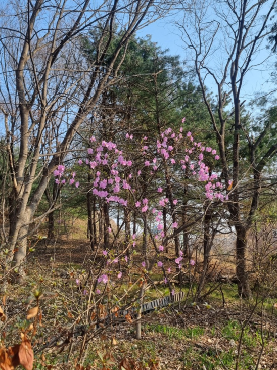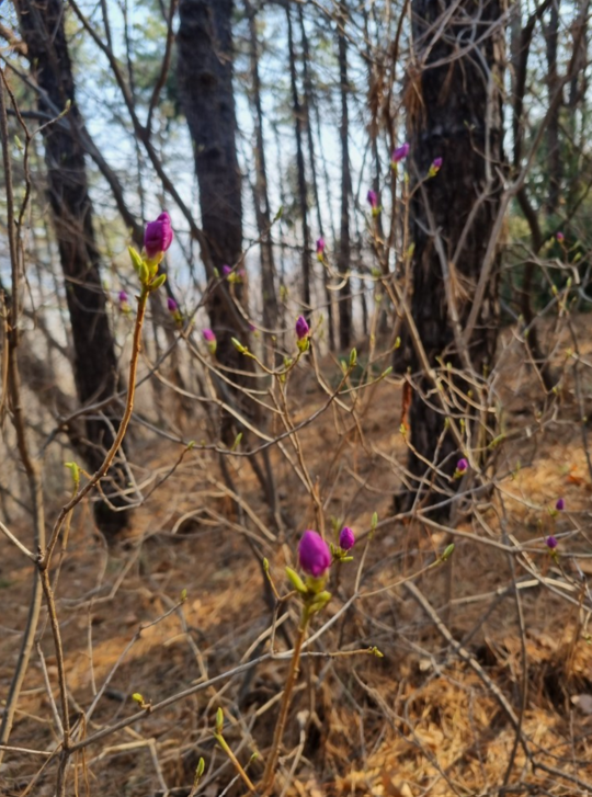 지금 진달래 1차로 피어있는데요, 꽃몽우리들이 많이 보이더라구요.
