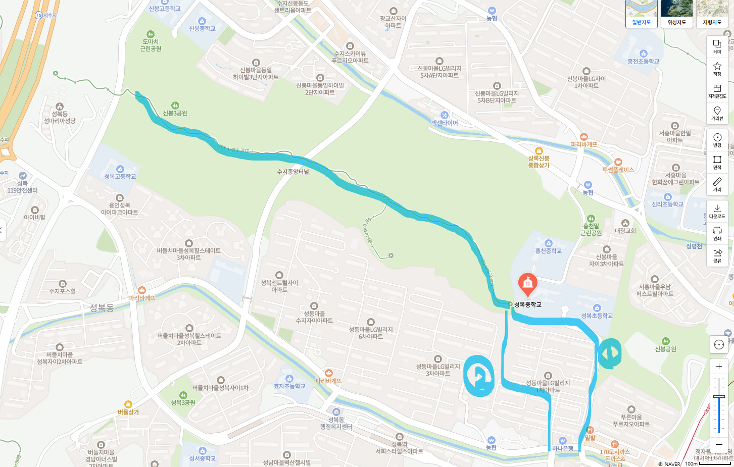 1번은 성복초, 중학교 올라가는 통학로에요.