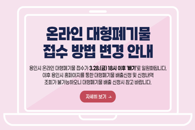 이불은 대형폐기물에 속하므로 대형폐기물로 비용을 내고 배출하셔야 합니다. 용인시의 경우 2025년 3월 28일 이후로 대형폐기물 접수방법은 "빼기" 사이트를 이용하는 것으로 일원화되었습니다.