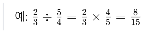 분수끼리 나눌 때는 나누는 분수의 역수를 취하여 곱셈으로 변환한 후 계산합니다.