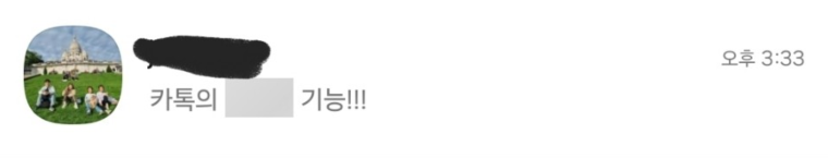 이 기능을 사용하여 메시지를 작성하시면 스포 방지 기능을 적용한 글자가 아래 사진처럼 회색 박스로 가려져 보이지 않습니다. 톡창 내에서도 안보이고, 채팅창 리스트가 보이는 화면에서도 그 글자는 회색 박스처리 되어 보이지 않습니다. 그 부분의 내용이 궁금하다면 회색 부분을 터치 하면 작성한 내용의 글씨가 제대로 보입니다. ^^ 톡창을 나갔다가 다시 들어가면 스포방지 기능이 다시 활성화되어 다시 회색 박스로 내용이 감춰져 보입니다.