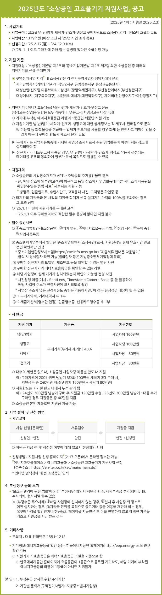 2025년도 소상공인 고효율기기 지원사업 공고문 2025.02.03
