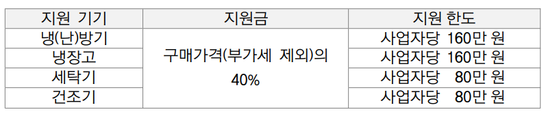2025년에는 냉방기를 추가로 구매해도 최대 40만 원까지 밖에 지원받으실 수 없습니다. (160만 원 한도)