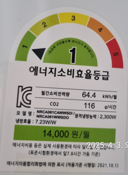 - 에너지효율등급 라벨