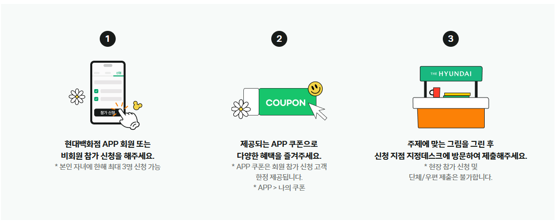 신청은 현대백화점 APP 또는 홈페이지에서 가능하며, 현장 접수는 불가하니 미리 신청해 주세요!