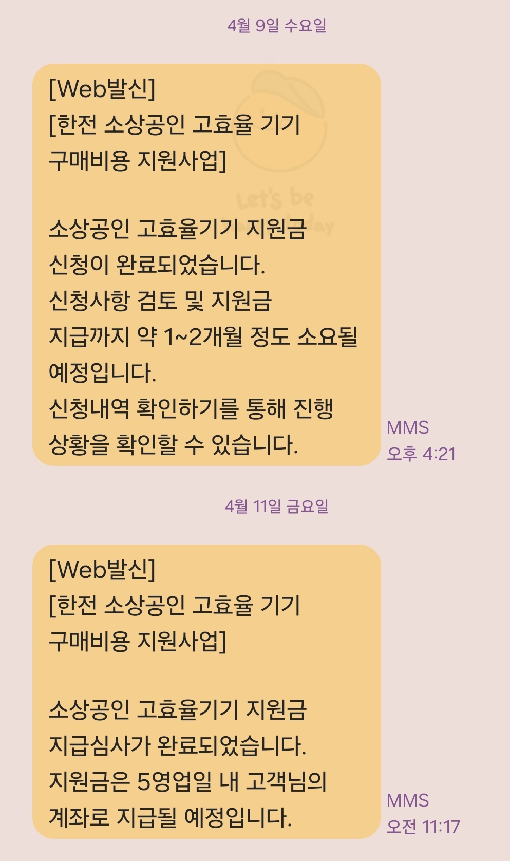 4월 9일에 신청했는데 11일에 문자를 받았습니다. ^^