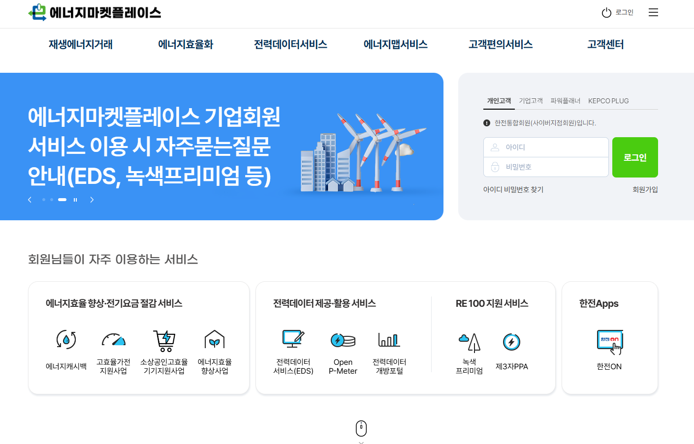 1. 에너지마켓플레이스 홈페이지에 방문하세요.