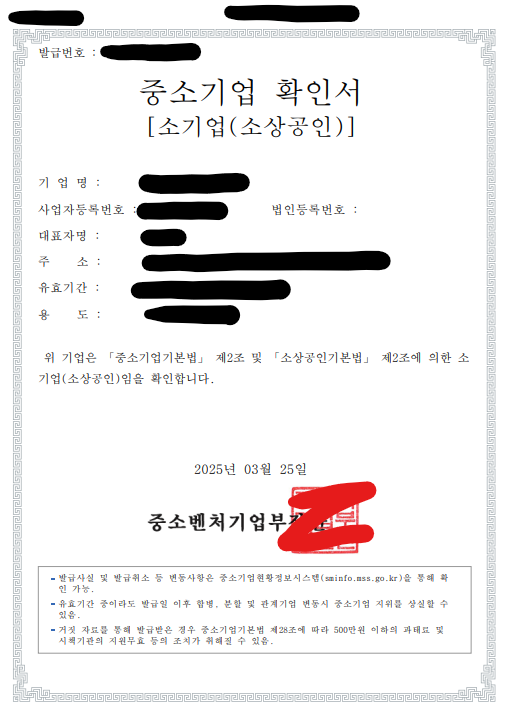 1. 중소기업확인서