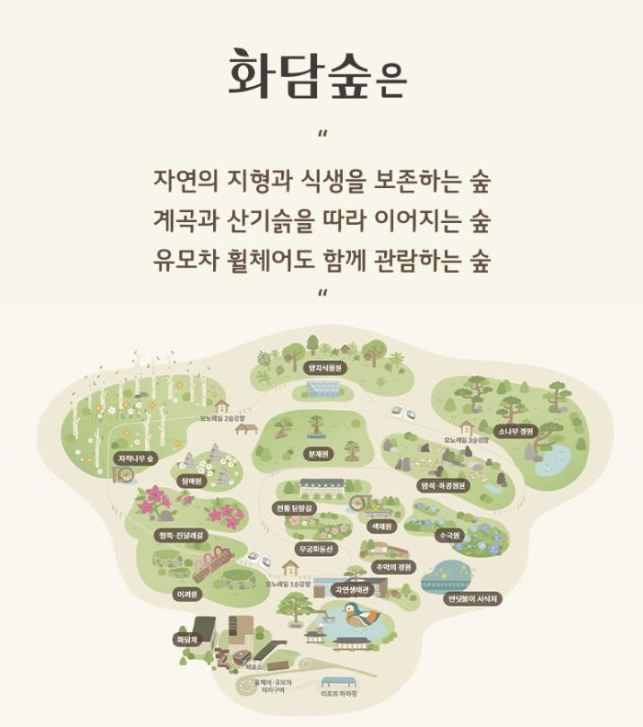 봄철 신록부터 가을 단풍까지 사계절 내내 아름다운 화담숲은 사전 예약제로 운영되며, 입장권과 모노레일 탑승권은 각각 별도로 예매해야 합니다.